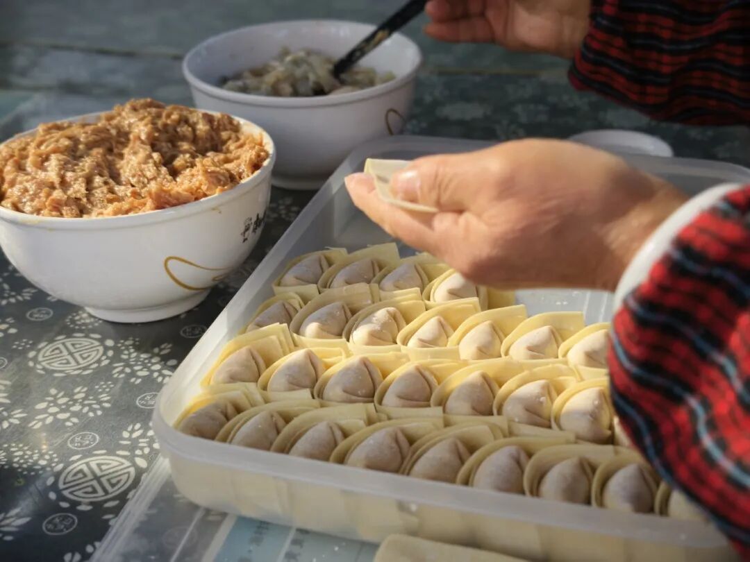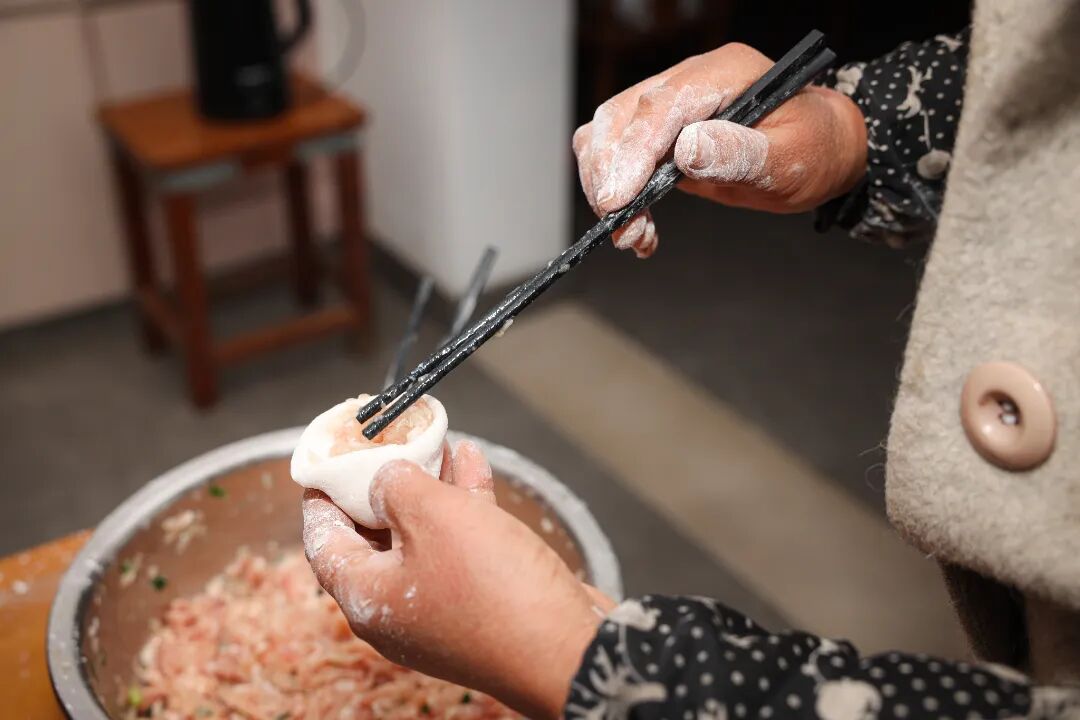 除了黃魚餛飩,漁村不少人家有冬至前后做湯圓的習(xí)慣。村民李秀華家中,她和老鄰居圍坐一起,邊聊家常邊揉面、搓圓、填餡,餡料風(fēng)味是關(guān)鍵。