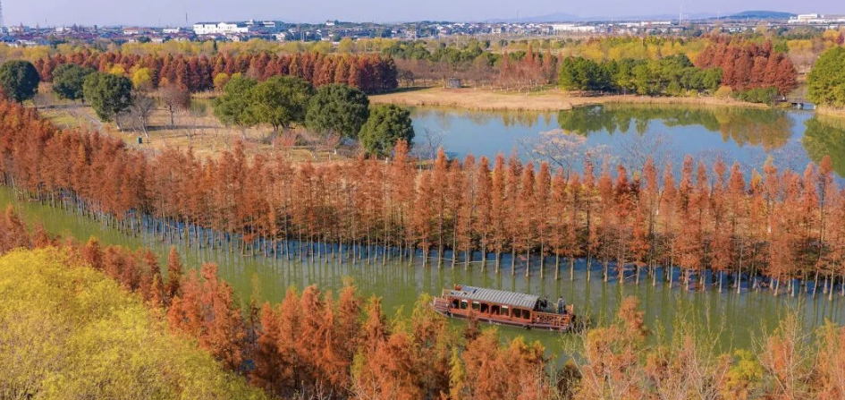冬日的虎丘濕地公園,杉林美景不容錯(cuò)過。水上杉林、水巷杉林、荷蓮杉林等景觀,正上演著大自然的色彩漸變秀,錯(cuò)過可要再等一年!
