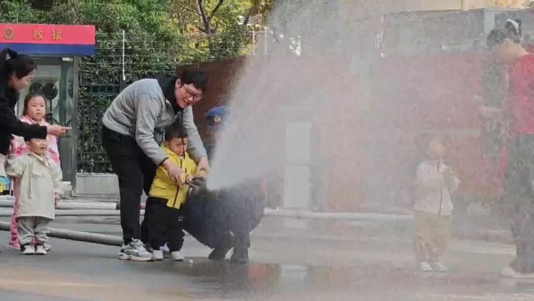 活動現(xiàn)場設(shè)置了多樣的互動體驗環(huán)節(jié)。孩子們在家長的陪同下,興致勃勃地體驗了消防水槍的操作。在消防員的專業(yè)指導(dǎo)下,親子家庭還學(xué)習(xí)并實踐了逃生繩的使用方法,在互動過程中掌握了實用的消防安全技能。