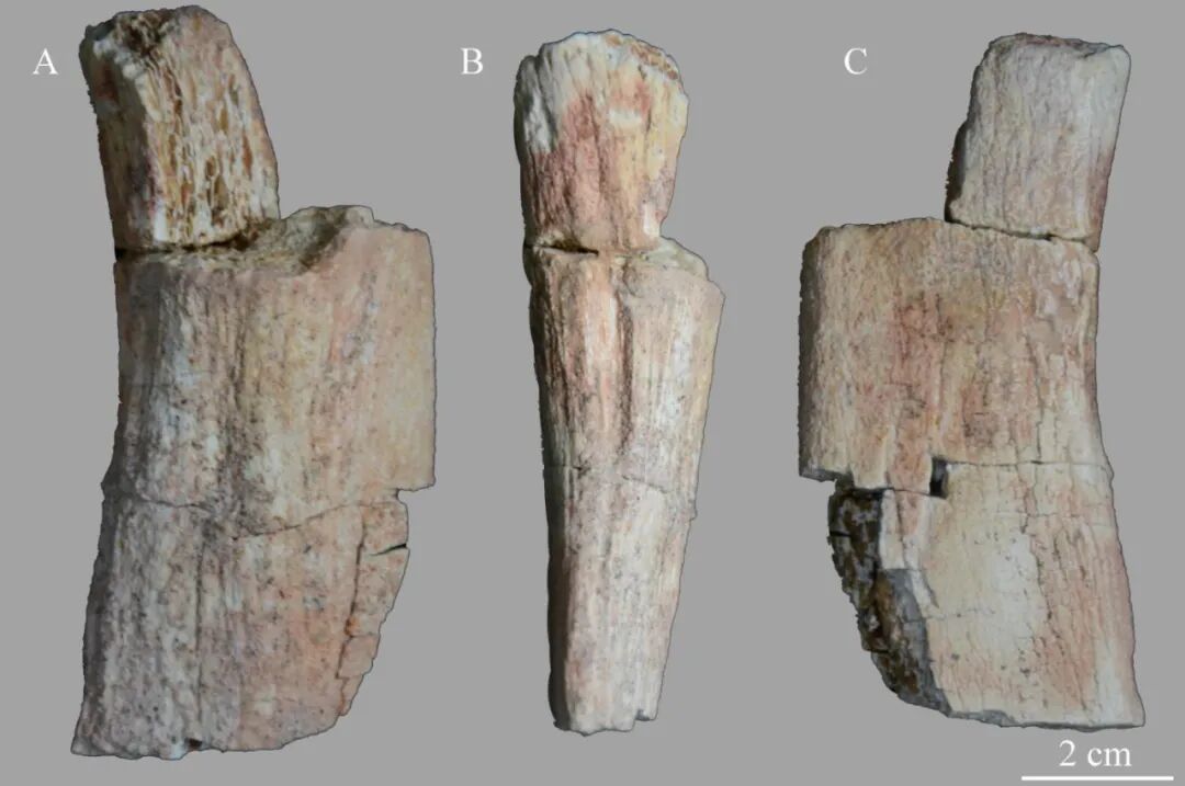 同時出土的骨骼化石為一段肋骨,略彎曲且扁平,推測屬于獸腳類恐龍的中段或近端肋骨。