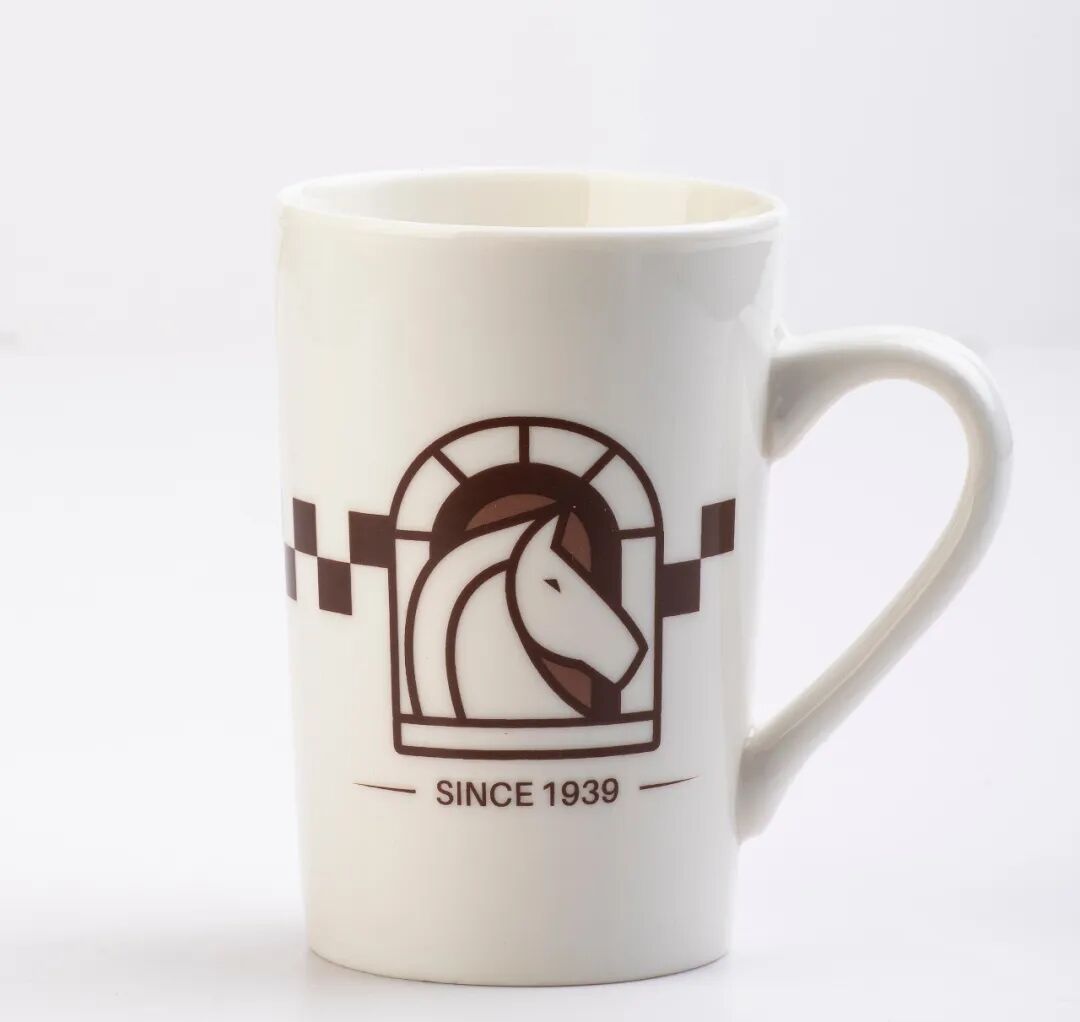 馬克杯:以純白釉面為底,點(diǎn)綴著咖啡色經(jīng)典駿馬徽標(biāo),將白馬咖啡館的視覺(jué)符號(hào)與歷史年份融入日常器物,見(jiàn)證歲月沉淀。