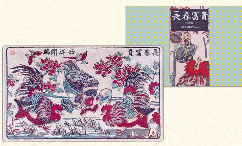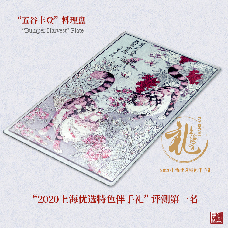 “五谷豐登”“長(zhǎng)春富貴”料理盤表面玻璃耐熱溫度高達(dá)200℃,料理盤圖樣取自上海圖書館館藏《蠶花茂盛、五谷豐登》和《長(zhǎng)春富貴西洋斗雞》,寄托了富貴吉祥的祝愿。