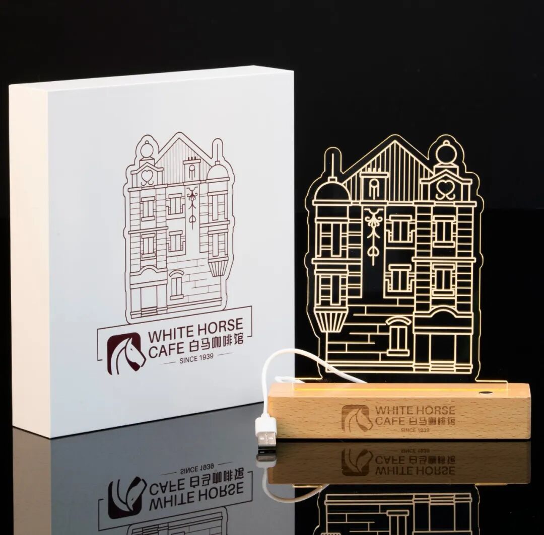 亞克力燈:以白馬咖啡館經(jīng)典建筑輪廓為造型,復(fù)刻了窗欞與磚墻肌理。燈體點(diǎn)亮?xí)r,暖光從館藏建筑模型的每一處細(xì)節(jié)中漫溢,仿佛歷史在光影中蘇醒。