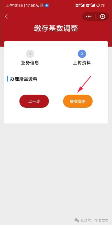 第三步:在申請頁面的“調(diào)整后繳存基數(shù)”一欄,在畢節(jié)市現(xiàn)行繳存基數(shù)上下限范圍內(nèi)自主填寫調(diào)整后的繳存基數(shù)。確認(rèn)調(diào)整后的月繳存額、生效年月等信息后,點擊“下一步”,接著點擊“提交業(yè)務(wù)”并完成人臉識別驗證,驗證通過后等待審核即可。