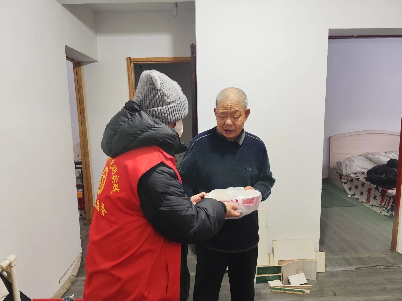 活動當(dāng)天,社區(qū)活動室內(nèi)暖意洋洋,一派忙碌又溫馨的景象。志愿者們分工明確、相互協(xié)作,拌餡料、搟餃皮、包餃子,動作熟練、配合默契。伴隨著陣陣歡聲笑語,一個個裹滿心意的餃子很快就整齊排列起來。之后,社區(qū)工作人員與志愿者代表組成慰問小組,把包好的餃子送到社區(qū)高齡老人和獨居老人家中。每到一戶,大家都和老人親切交流,仔細(xì)詢問他們的身體狀況與生活情況,還貼心叮囑他們注意防寒保暖以及用火用電安全。老人接過這份冬日里的特殊禮物,臉上露出了燦爛的笑容,不斷向大家道謝,真摯的喜悅與溫暖在空氣中流淌。