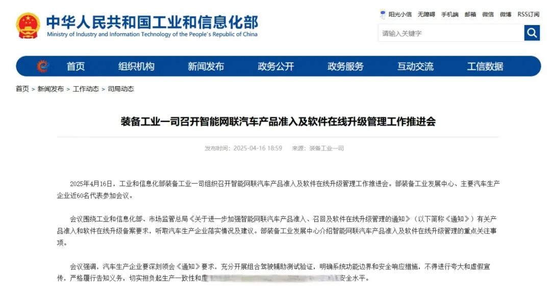 今年4月16日,工業(yè)和信息化部裝備工業(yè)一司組織召開智能網(wǎng)聯(lián)汽車產(chǎn)品準(zhǔn)入及軟件在線升級管理工作推進(jìn)會,部裝備工業(yè)發(fā)展中心、主要汽車生產(chǎn)企業(yè)近60名代表參加。
