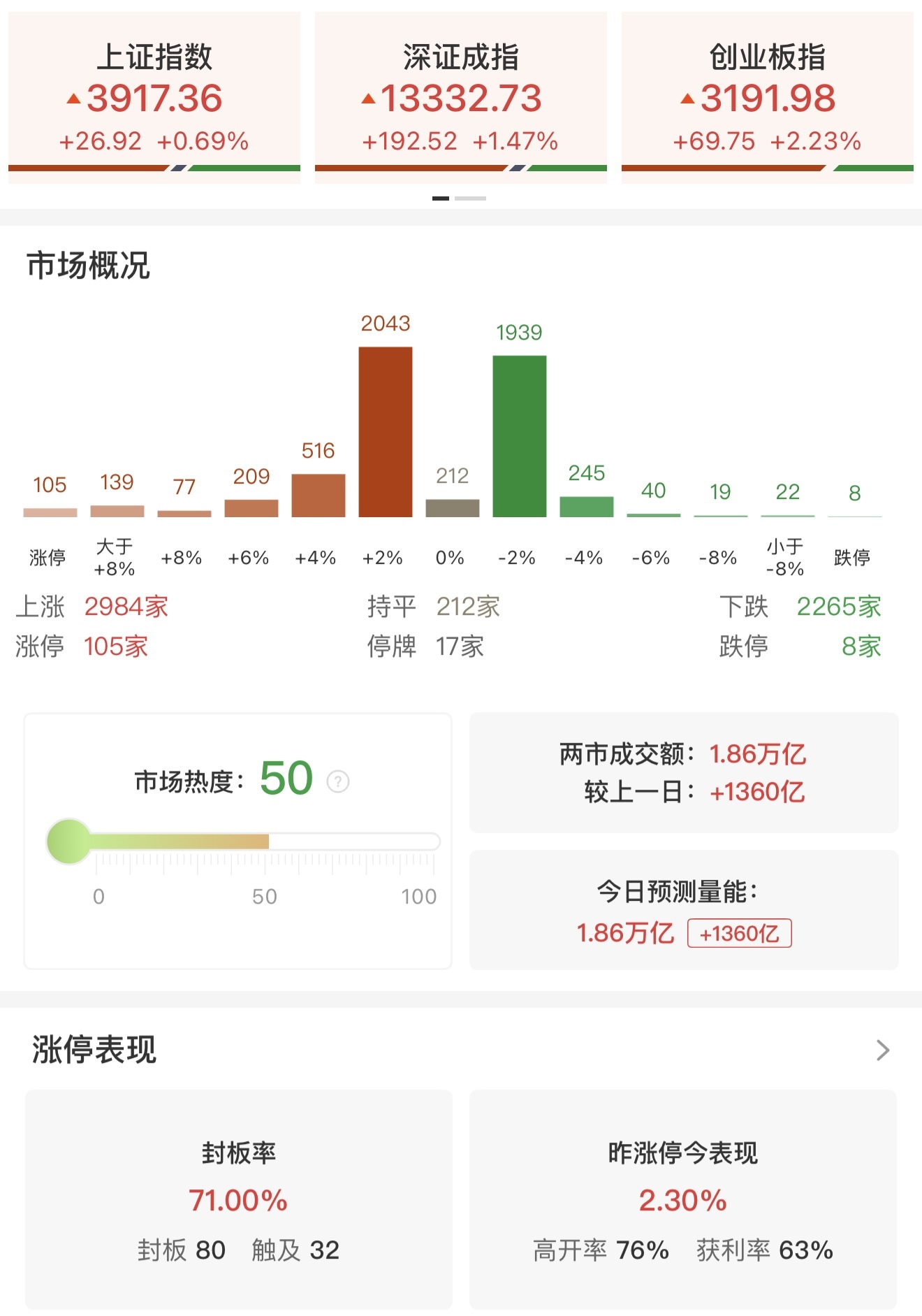 三大指數(shù)同步反彈 創(chuàng)業(yè)板指漲幅超2% 市場(chǎng)交投活躍度提升