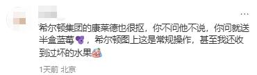 “希爾頓的康萊德也特別摳,你不問他就不說,你問了也就送半盒藍莓,圖上這種情況都是常規(guī)操作,我甚至還收到過壞水果。”