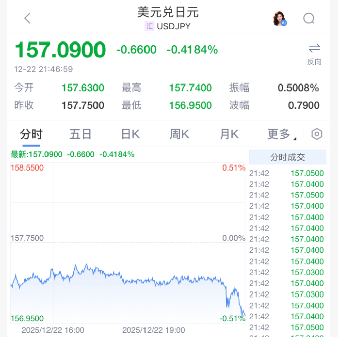 去年,日本財務省為支撐日元匯率在外匯市場投入約1000億美元,干預區(qū)間大致在美元兌日元160左右。周一晚間,日元兌美元匯率交投于157.40附近。