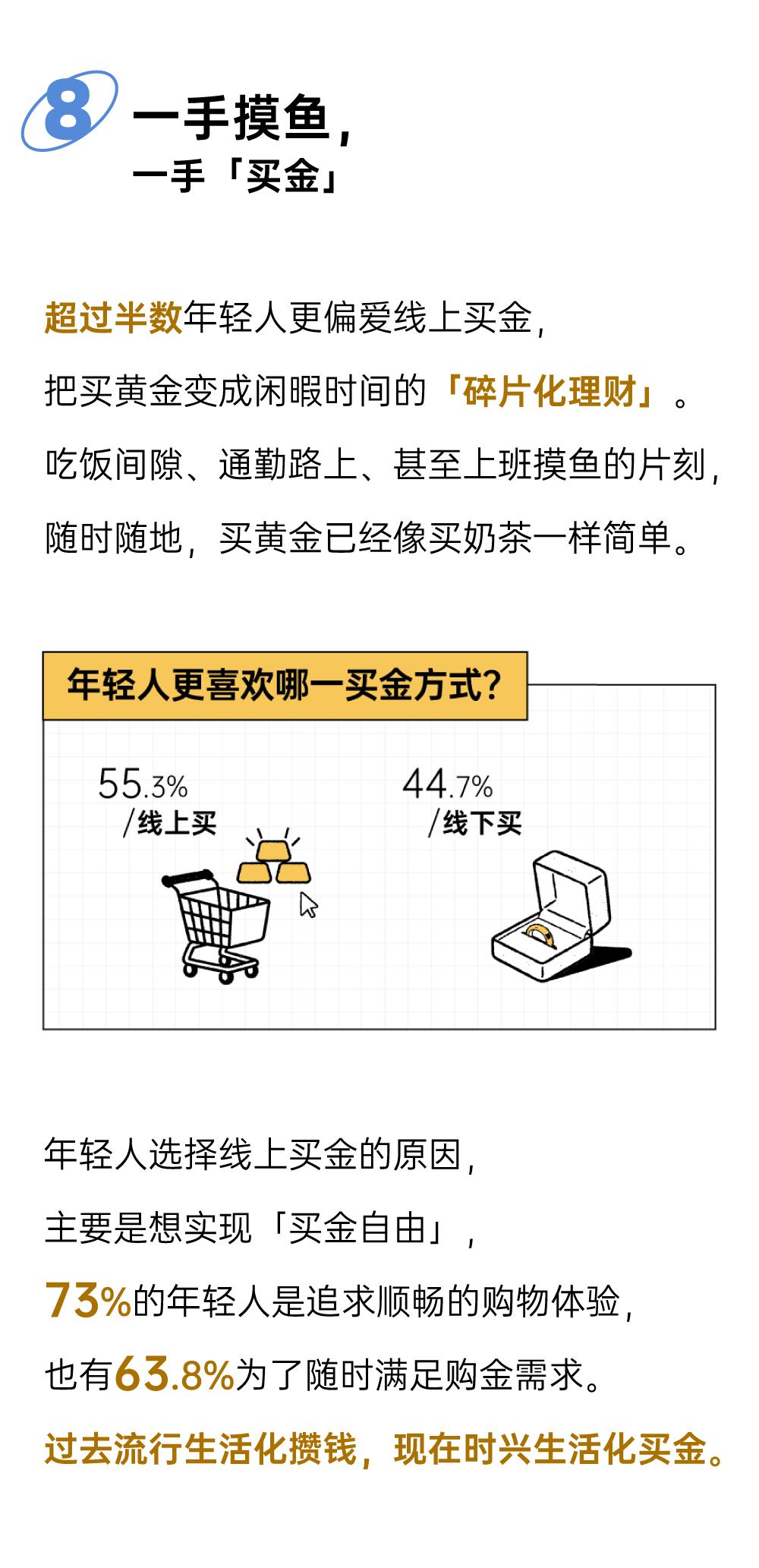 在十大現(xiàn)象中,不難發(fā)現(xiàn),年輕人尋找的已不止是一塊黃金,更是一份可以握在手中的安全感。買金也不只是一種交易,而是一種輕盈、踏實的生活習慣。