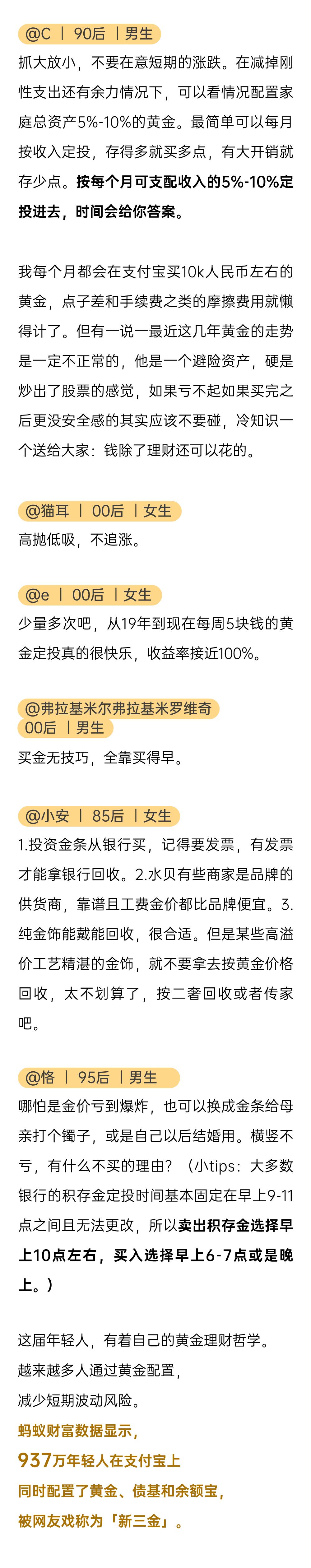 好在,有像支付寶這樣的 「買金搭子」 ,懂得年輕人的不安。沒有溢價,沒有套路,只有清清楚楚的源頭金價和點擊就能完成的簡單操作。