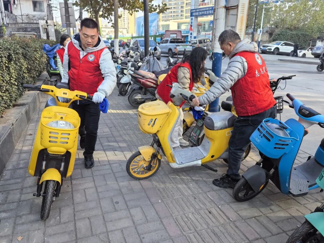黨員志愿者規(guī)范單車停放。