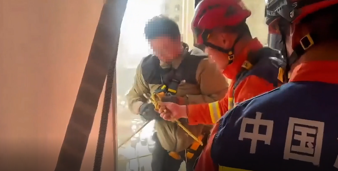 消防員迅速制定“雙保險(xiǎn)救援方案”:一組人員放下安全繩,指導(dǎo)工人加固防護(hù),與他自身的安全繩形成雙重保護(hù);另一組則利用樓道供水管道架設(shè)救援軟梯。在雙重保護(hù)下,工人踩著軟梯緩慢向上攀爬,每移動(dòng)50厘米,上方救援人員就收緊一次安全繩。