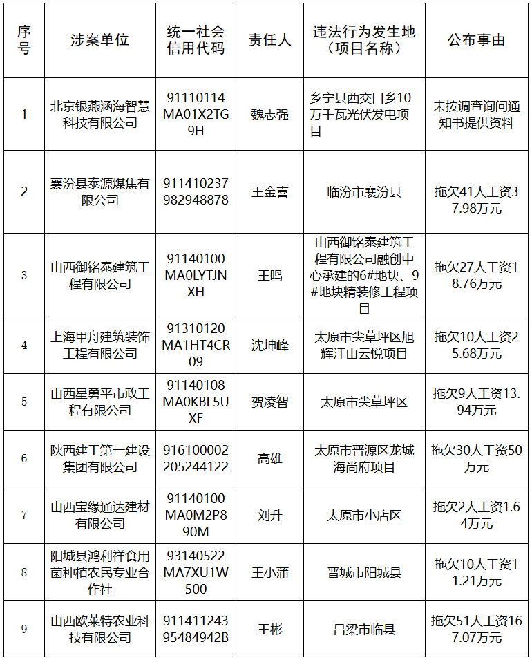 原標題:《山西省人社廳曝光9起重大勞動保障違法案件》