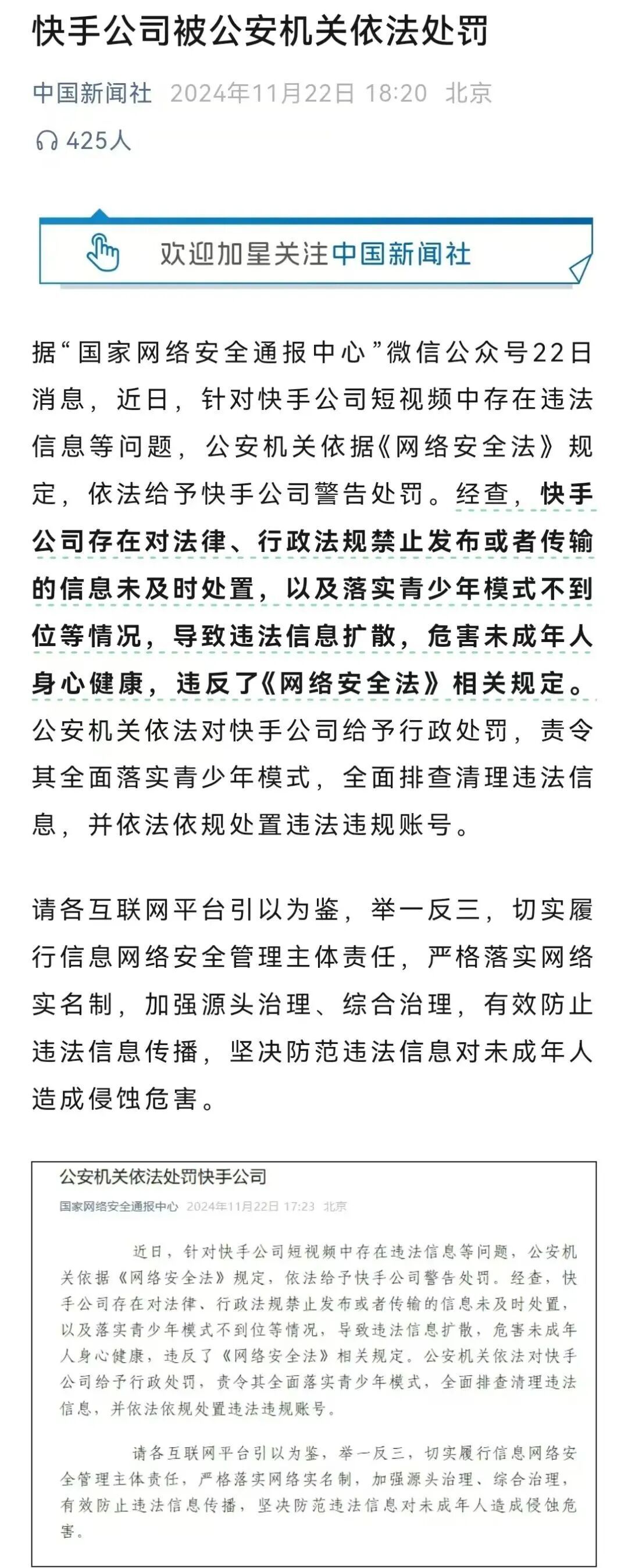 更值得關注的是,快手平臺上活躍著大量青少年用戶。作為未成年人保護的重點領域,快手雖多次強調“科技向善”,并推出青少年模式(已升級至5.0版本),優(yōu)先推送教育、科普等優(yōu)質內容,但實際效果卻不盡如人意。此前,平臺曾出現“00后寶媽”等低俗內容,對青少年價值觀造成不良引導;2024年,快手還因“落實青少年模式不到位”被處罰。有觀點認為,部分青少年通過卸載重裝APP等方式繞過監(jiān)管限制,暴露出平臺技術防護的不足——連未成年人的“小伎倆”都防不住,又如何抵御黑灰產的專業(yè)攻擊?