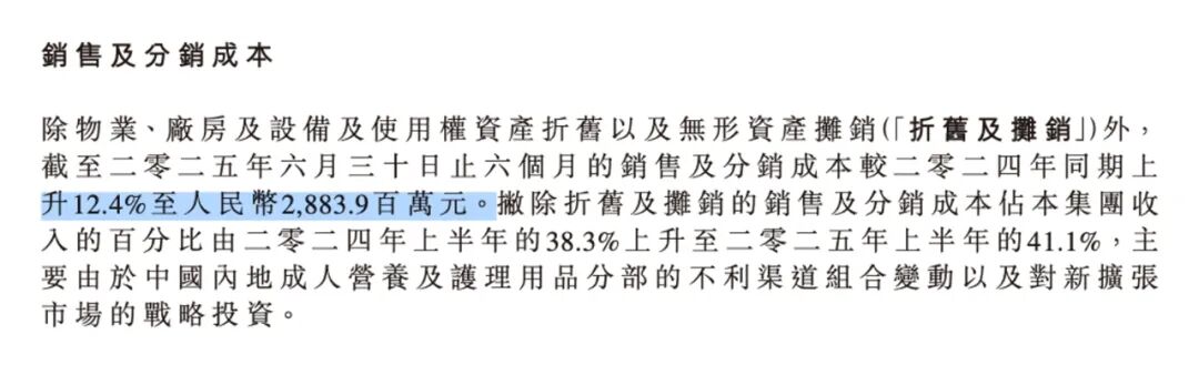 首要困境是巨額營銷吞噬利潤,電商平臺流量成本逐年提升。盡管Swisse多次斬獲電商保健品類第一,但需支付高額平臺傭金、流量廣告位等費用。2025年上半年,健合集團銷售及分銷成本攀升至28.83億元,同比增長12.4%,幾乎相當(dāng)于上半年凈利潤的4倍。健合表示,主要因中國內(nèi)地成人營養(yǎng)及護理用品業(yè)務(wù)的不利渠道組合變動以及對新擴張市場的戰(zhàn)略投資。2025年上半年成人營養(yǎng)及護理銷售及分銷成本達14.41億元,同步增長19.2%,遠超營收增速。從健合近年來凈利潤看,高額營銷投入未轉(zhuǎn)化為有效盈利。