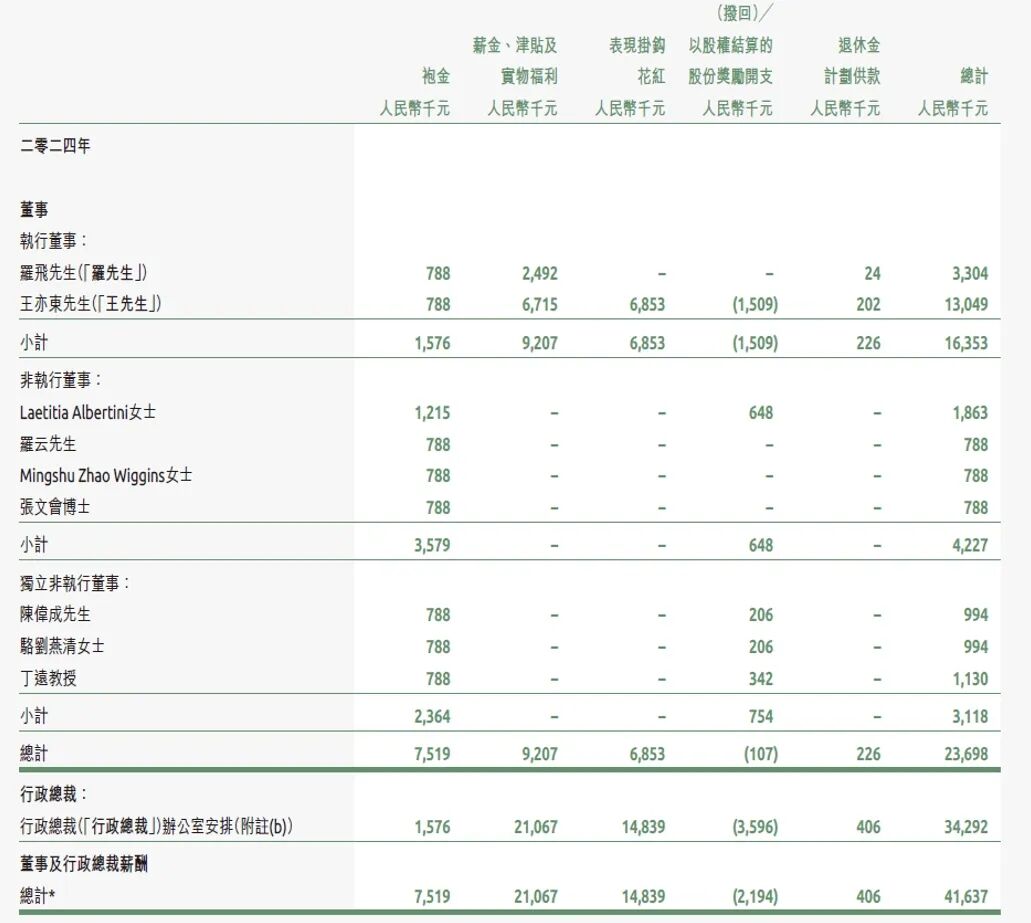 除業(yè)務(wù)和財務(wù)問題外,健合還面臨高管薪酬過高和商譽高企的風(fēng)險。2024年,董事及行政總裁薪酬合計4163.7萬元,同比增長19.4%,其中行政總裁單年薪酬高達3429.2萬元,同比暴漲近2500萬元。在集團凈虧損的背景下,高管薪酬大幅增長引發(fā)市場質(zhì)疑。