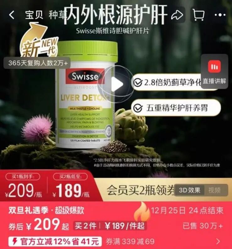 據(jù)東吳證券,截至2024年,Swisse跨境電商渠道占比近八成,電商屬性突出。