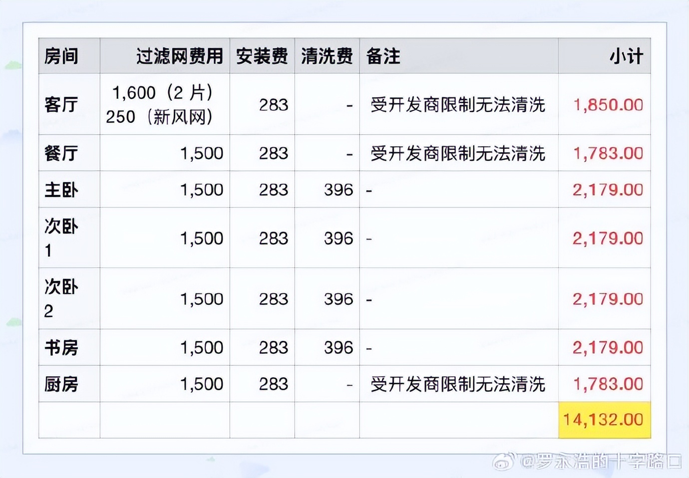 他在社交媒體上吐槽,上海租住處的中央空調(diào)做換季清洗時(shí),7臺(tái)內(nèi)機(jī)更換濾網(wǎng)加清洗的年費(fèi)報(bào)價(jià)高達(dá)約1.5萬元。老羅直言困惑:這難道是空調(diào)行業(yè)的普遍現(xiàn)象?