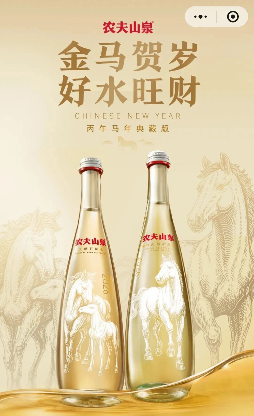 農(nóng)夫山泉自2016年起推出生肖典藏水,連續(xù)11年以“以水寄情、以生肖傳意”為主題,通過“視覺錘+認(rèn)知錘+價值錘”的組合策略,將生肖水打造成春節(jié)標(biāo)志性品牌符號。視覺上,高端玻璃瓶與日常塑料瓶形成區(qū)隔,塑造禮品場景專屬感;認(rèn)知上,為每個生肖賦予文化解讀,如2026丙午馬年生肖水結(jié)合“驛馬主變動革新”的玄學(xué)寓意,強(qiáng)化儀式感與精神價值;價值上,通過限量發(fā)售、編號收藏等方式,培養(yǎng)消費(fèi)者長期收藏習(xí)慣,構(gòu)建禮贈場景競爭壁壘。