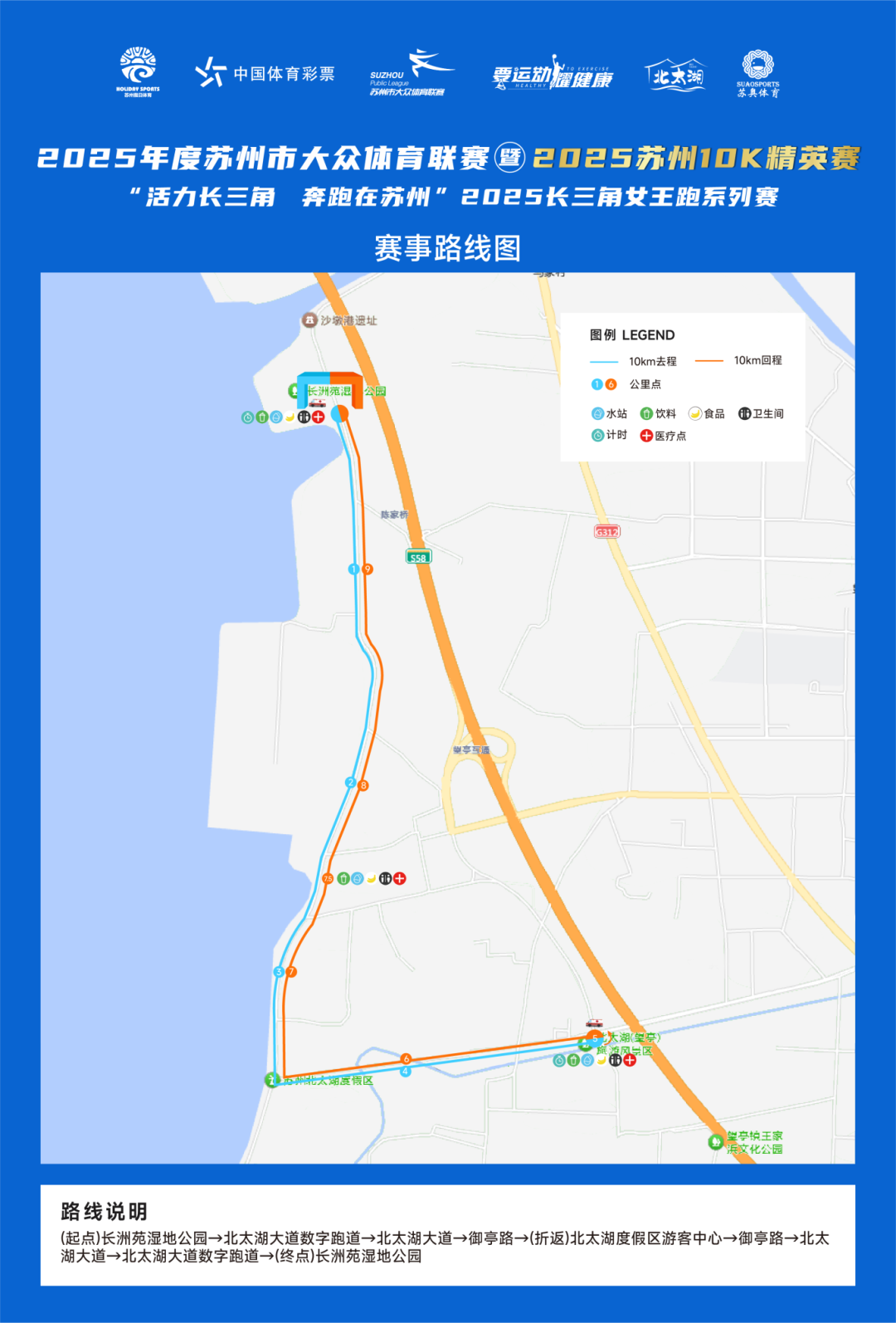 起點(diǎn)為長洲苑濕地公園,途經(jīng)北太湖大道數(shù)字跑道、北太湖大道、御亭路,至北太湖度假區(qū)游客中心折返,再沿御亭路、北太湖大道、北太湖大道數(shù)字跑道返回,終點(diǎn)為長洲苑濕地公園。