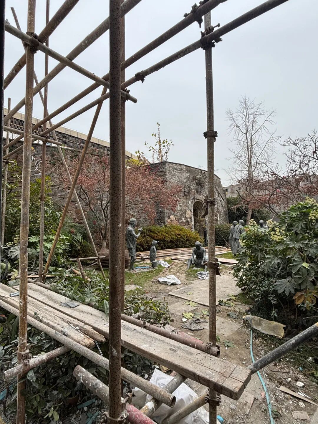 冬日的古運河畔,大窯路片區(qū)的更新熱潮已然涌動——走過伯瀆橋、穿過運河之眼區(qū)域,綠色的施工圍擋有序布設(shè),部分需要修繕的古窯外已架起腳手架和圍擋,工人正小心翼翼地清理窯體上盤繞的雜樹根系,設(shè)在古窯遺址博物館旁的項目指揮部內(nèi),“大窯路片區(qū)更新工程”的標(biāo)識清晰醒目。