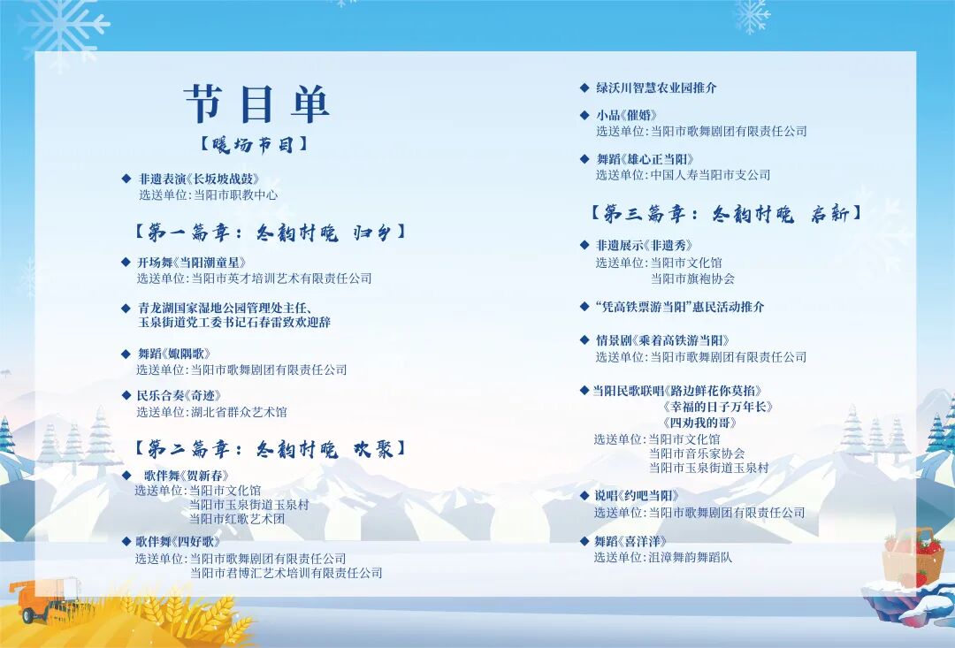 12月27日(本周六)上午9點,“漫賞冬韻·秀美玉泉”2025年湖北省冬季“村晚”(玉泉街道玉泉村)基層示范展示活動,將在當陽市綠沃川智慧農(nóng)業(yè)園熱鬧開啟,誠邀你共赴這場冬日盛會!