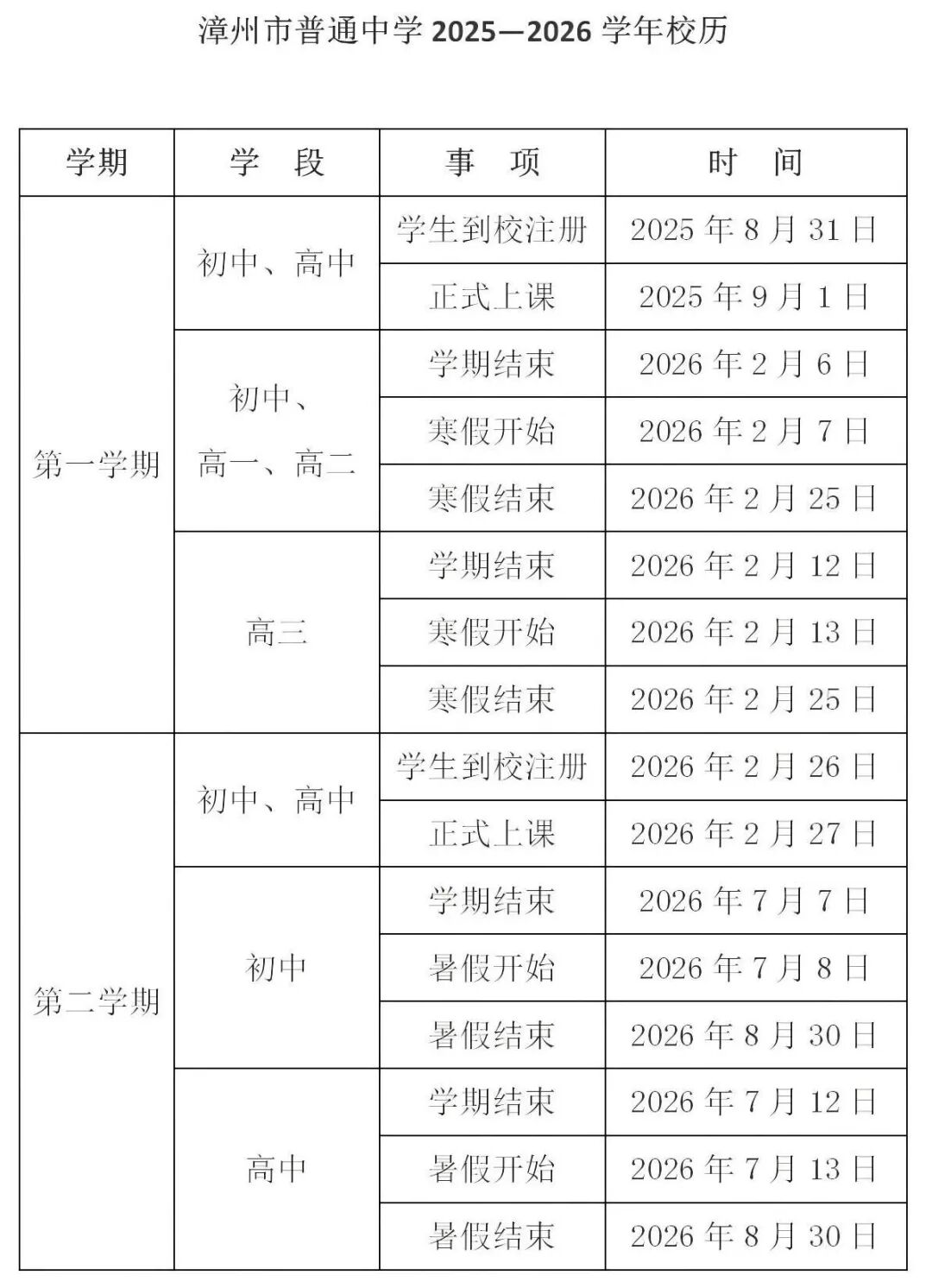 福建2025-2026學(xué)年寒假及春季開學(xué)時間公布