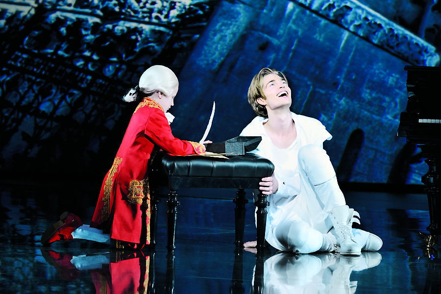 近年來,以名人為原型的戲劇層出不窮,歷史人物與當(dāng)代英雄輪番登場(chǎng)。大家都感慨“真人難寫”,往往顧此失彼,很難讓熟悉原型的觀眾認(rèn)可其真實(shí)性。在這個(gè)背景下,《莫扎特!》的編劇兼作詞米歇爾·昆策對(duì)辯證主題的把握與呈現(xiàn)方式,更顯得匠心獨(dú)運(yùn)。我們?cè)趧≈锌吹搅硕嗌賯€(gè)莫扎特?除了小莫扎特阿瑪?shù)?、少年與成年莫扎特,還有父親眼中的“不孝子”、總主教眼中的“刺頭員工”、男爵夫人眼中“恨鐵不成鋼”的年輕人、妻子眼中的愛人、岳母眼中的“獵物”、賭友眼中的“冤大頭”……所有這些側(cè)面,都被昆策巧妙地編織進(jìn)充滿懸念與歌聲的劇情中。