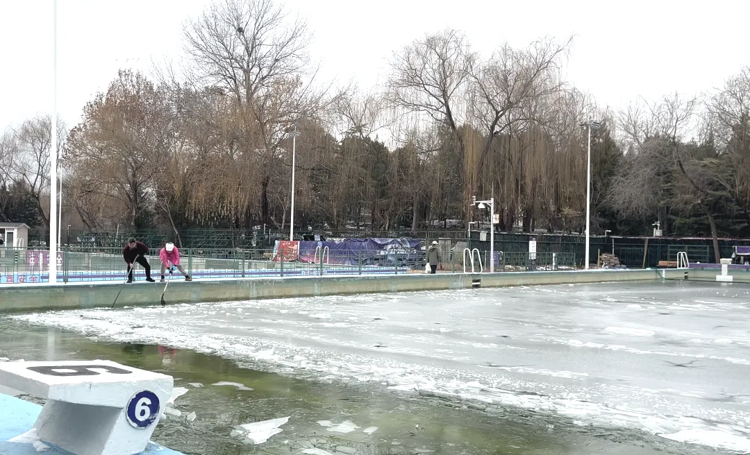 深冬的上午11點,氣溫僅1℃的清華大學西湖游泳池邊,整齊的號子聲劃破清冷。五六位冬泳協(xié)會成員手持鐵鏟合力推動,一塊千余平方米的大冰塊從泳池北側移向南側,冰下一條十余米寬的泳道隨之顯露。