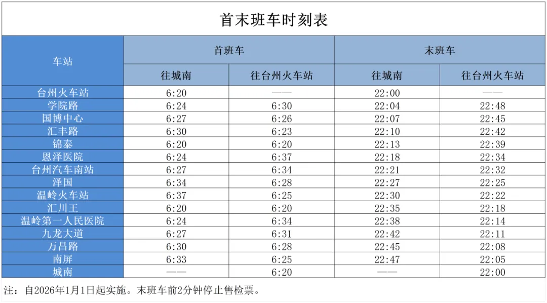 為了更好地滿足廣大乘客的出行需求,臺(tái)州S1線將于2026年1月1日起對(duì)行車計(jì)劃進(jìn)行優(yōu)化調(diào)整,具體調(diào)整內(nèi)容如下:
