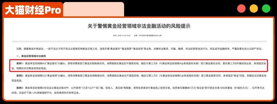 黃金雖價值不菲,但僅靠黃金銷售根本無法支撐10%以上的收益率,“黃金委托”業(yè)務(wù)很快就被深圳金融辦列入風(fēng)險提示名單。