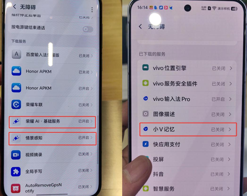 記者發(fā)現(xiàn)榮耀、vivo等手機(jī)的無障礙功能中也有AI智能體,用戶聊天記錄、銀行卡號(hào)等可能被獲取。