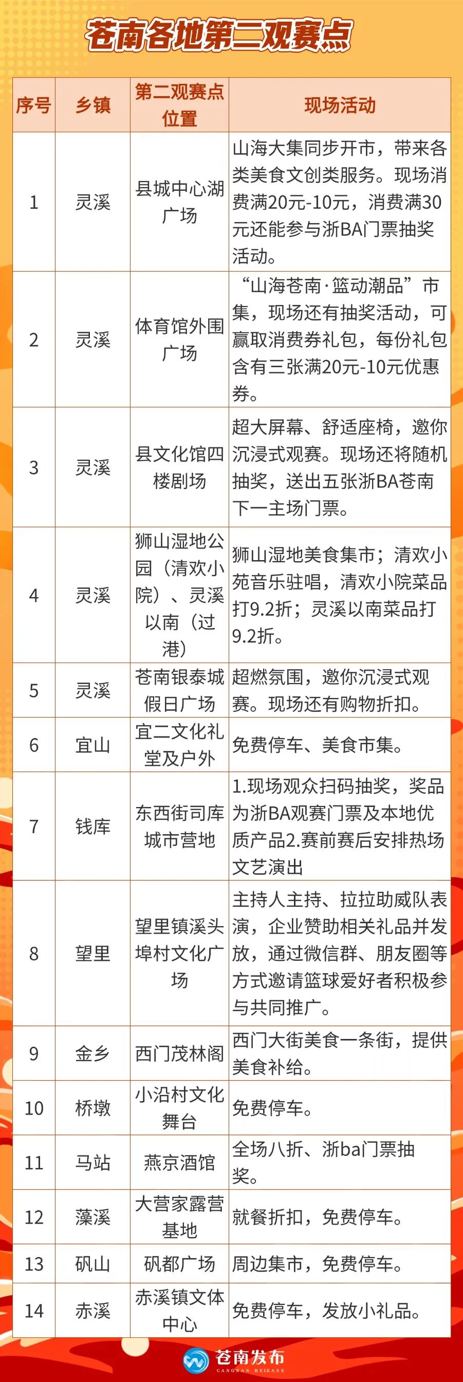 各地觀賽點(diǎn)及活動(dòng)詳情見下表