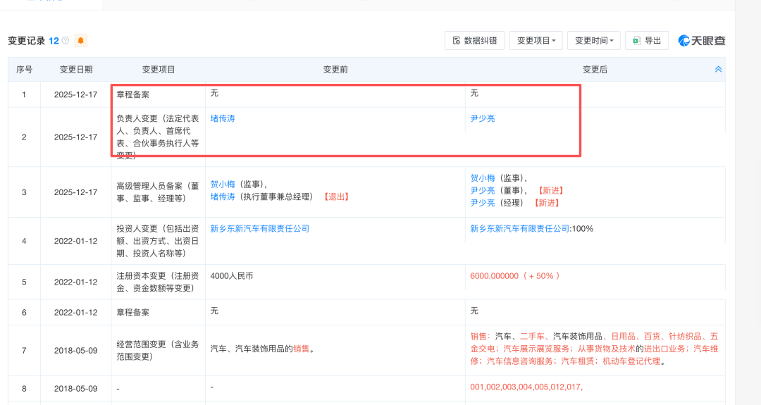 值得注意的是,12月17日(閉店前一周),公司法定代表人由堵傳濤變更為尹少亮。鄭州東保潤(rùn)由新鄉(xiāng)東新汽車(chē)有限責(zé)任公司100%控股,后者隸屬于東安控股集團(tuán),該集團(tuán)是中國(guó)汽車(chē)流通行業(yè)百?gòu)?qiáng)企業(yè),代理13個(gè)汽車(chē)品牌。