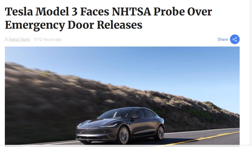 調(diào)查目前處于“缺陷請愿”階段,NHTSA將評估問題嚴重性以決定是否立案。此前已有媒體報道,多起致命車禍中,車內(nèi)乘員或救援人員因無法及時打開車門延誤救援。這個曾被視為電動車創(chuàng)新象征的設(shè)計,正面臨全球范圍的監(jiān)管壓力。