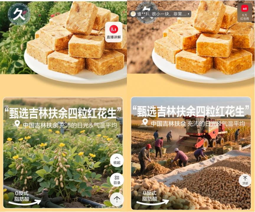 2025年8月,有網(wǎng)友發(fā)現(xiàn)良品鋪?zhàn)幽钞a(chǎn)品宣傳圖中的花生竟然掛在樹枝上,這與“花生地上開花、地下結(jié)果”的常識(shí)完全不符。這場“花生上樹”的烏龍迅速發(fā)酵,登上了各大社交媒體的熱搜。隨后良品鋪?zhàn)庸俜骄o急致歉稱:在電商平臺(tái)商品詳情頁中錯(cuò)誤使用了AI生成的圖片素材,發(fā)現(xiàn)問題后已立即更新修正相關(guān)頁面,并啟動(dòng)了對(duì)所有產(chǎn)品宣傳材料的全面科學(xué)性核查。