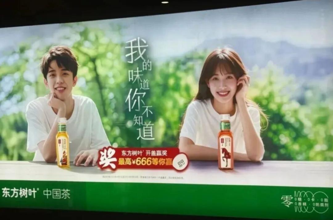 “滿屏都是虛假感,難道廣告費(fèi)都花在AI上了?”2025年5月,東方樹葉的戶外廣告呈現(xiàn)出“小清新”與“偽人感”的矛盾。這組廣告以青綠色為背景,兩個(gè)年輕模特托腮微笑,試圖營造元?dú)馇逍碌囊曈X效果。但仔細(xì)觀察會(huì)發(fā)現(xiàn),模特面部表情僵硬,手指關(guān)節(jié)有明顯的機(jī)械感,而且男生的左右手比例也存在明顯失調(diào)。