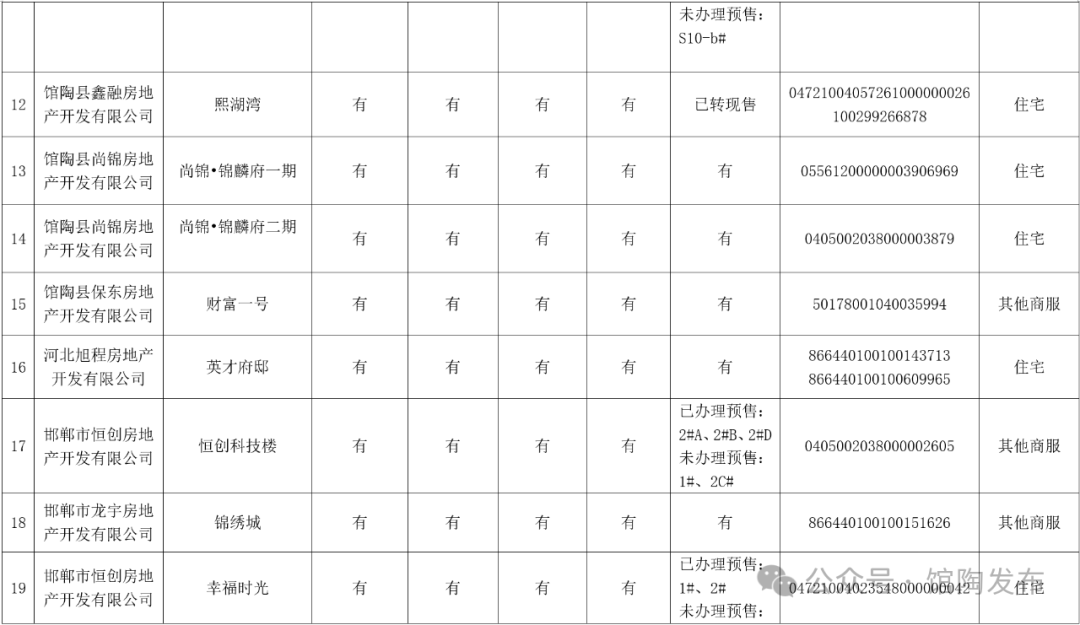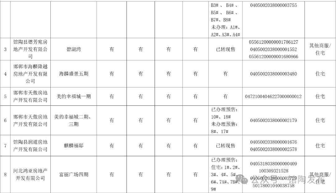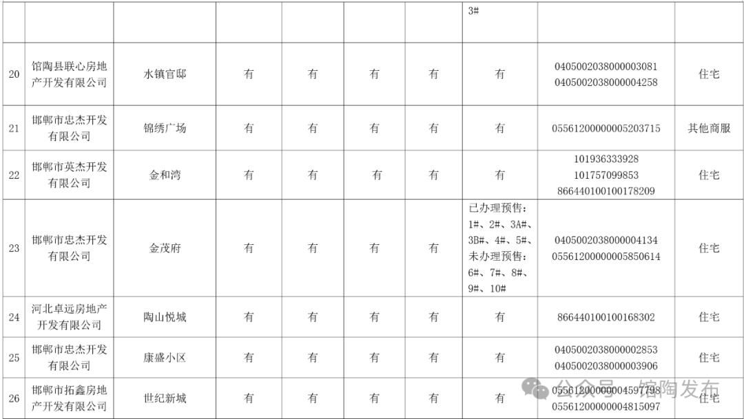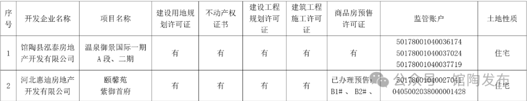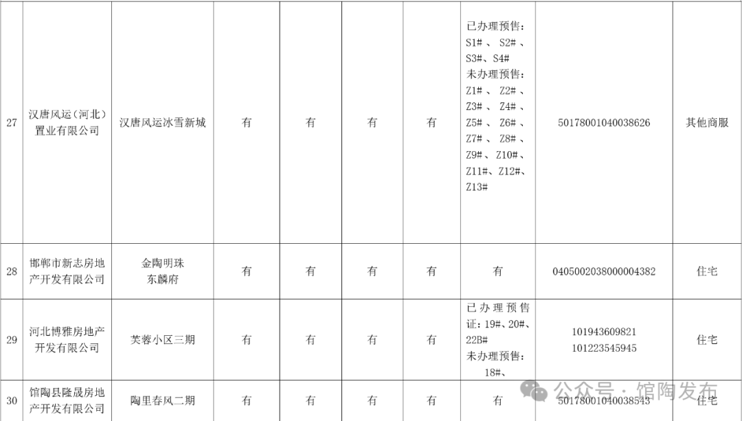 為進(jìn)一步規(guī)范縣域房地產(chǎn)市場(chǎng)秩序,切實(shí)維護(hù)群眾合法權(quán)益,館陶縣住房和城鄉(xiāng)建設(shè)局現(xiàn)將全縣在建在售項(xiàng)目的證件辦理情況進(jìn)行公示。在此提醒廣大群眾,在房屋買(mǎi)賣(mài)與交易過(guò)程中務(wù)必仔細(xì)甄別,購(gòu)買(mǎi)商品房時(shí)需嚴(yán)格核查樓盤(pán)的“五證”,即《建設(shè)用地規(guī)劃許可證》《不動(dòng)產(chǎn)權(quán)證書(shū)》《建設(shè)工程規(guī)劃許可證》《建筑工程施工許可證》《商品房預(yù)售許可證》,強(qiáng)化風(fēng)險(xiǎn)防范意識(shí)與法律維權(quán)意識(shí),維護(hù)自身合法權(quán)益,共同抵制違規(guī)預(yù)售行為,攜手維護(hù)房地產(chǎn)市場(chǎng)的良好秩序。