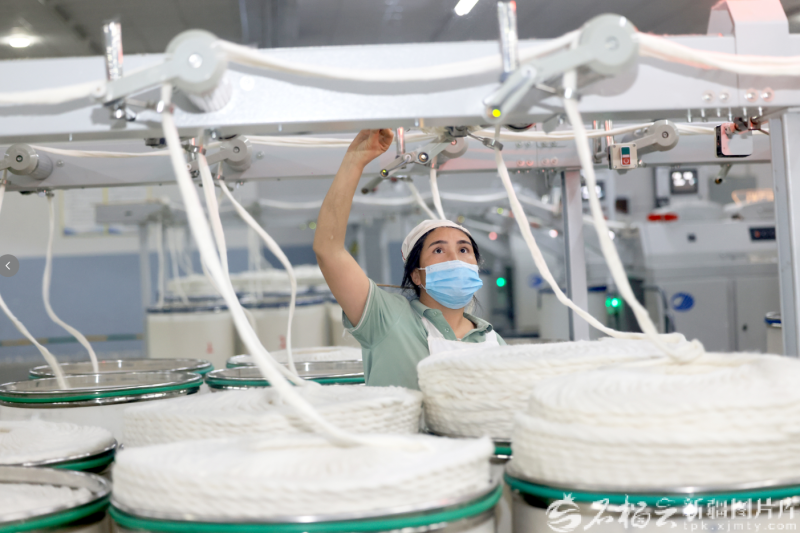 11月10日,喀什市長(zhǎng)盛紡織科技有限公司工人對(duì)接棉線(xiàn)。陳文軍攝
