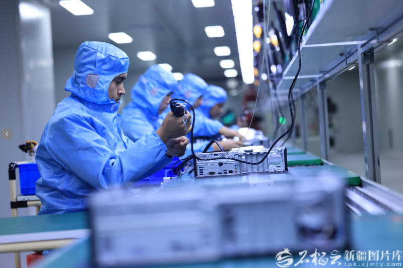 11月10日,員工在中國(guó)(新疆)自由貿(mào)易試驗(yàn)區(qū)喀什片區(qū)內(nèi)一家科技公司生產(chǎn)車(chē)間組裝電腦。陳文軍攝