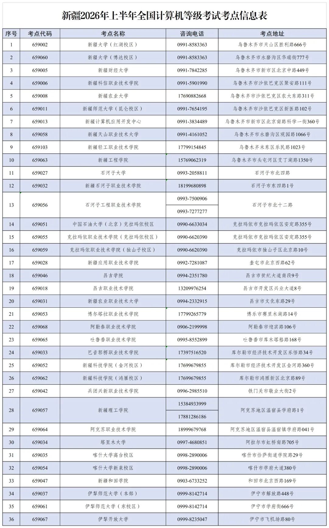 新疆2026年上半年全國計算機等級考試報名相關事宜公告