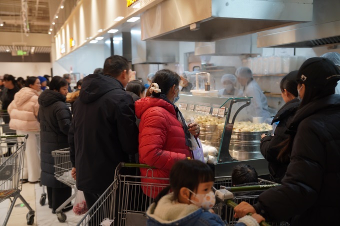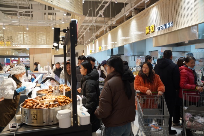 熟食區(qū)新增北京烤鴨、現(xiàn)炒板栗、奧爾良烤雞、三文魚(yú)壽司、手工包點(diǎn)、披薩、涼皮等多個(gè)美食檔口,顯著增強(qiáng)了賣(mài)場(chǎng)的煙火氣。
