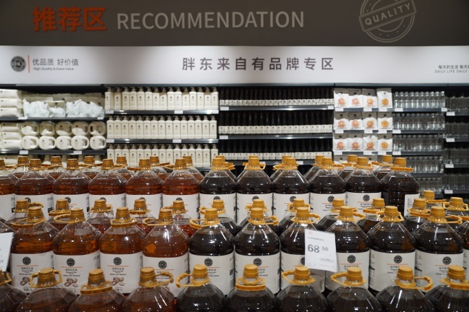 為深化對(duì)行業(yè)標(biāo)桿的學(xué)習(xí)融合,門(mén)店特別設(shè)置“胖東來(lái)自有品牌專區(qū)”,集中陳列DL飲用天然礦泉水、DL寶豐自由愛(ài)白酒、DL果汁等特色商品,讓溫州消費(fèi)者在家門(mén)口就能體驗(yàn)胖東來(lái)的品質(zhì)好物。
