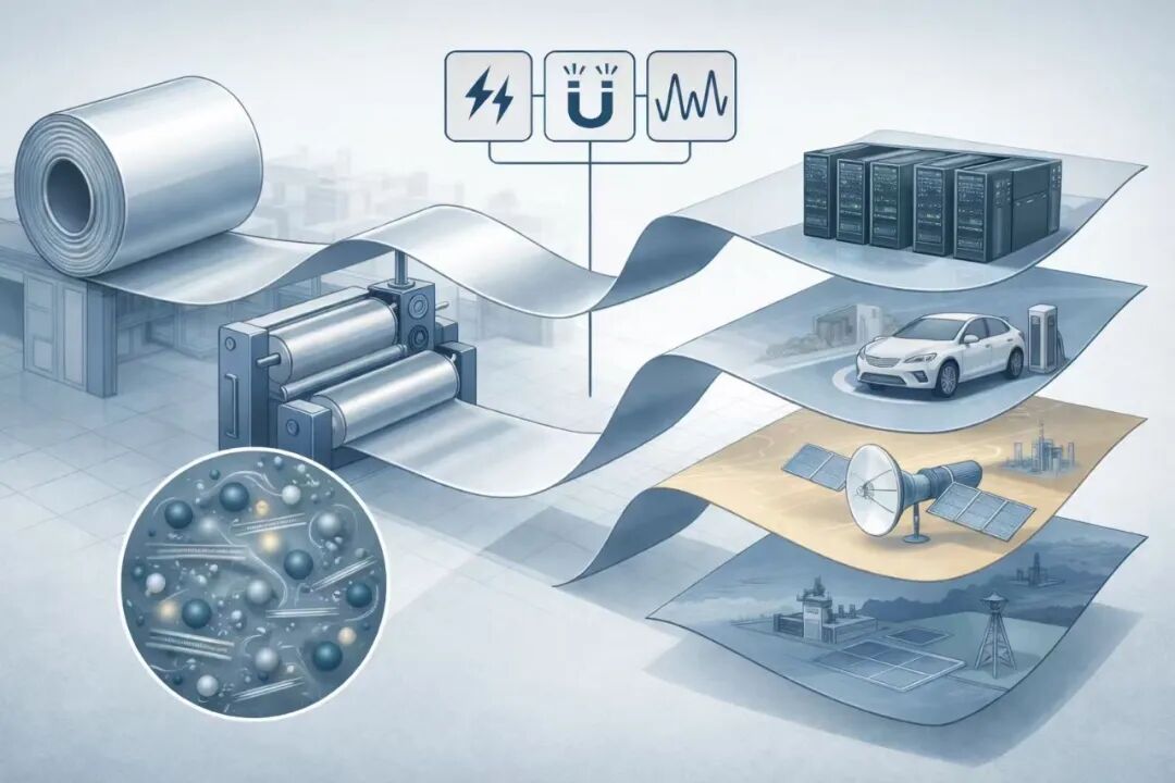 「清融科技」的技術(shù)突破源于清華大學(xué)南策文院士和沈洋教授團(tuán)隊(duì)20余年的研發(fā)積累。公司通過(guò)多尺度結(jié)構(gòu)調(diào)控和連續(xù)化制備工藝,解決了復(fù)合材料填料分散、界面優(yōu)化等難題,實(shí)現(xiàn)大尺寸功能薄膜(如千米級(jí)膜卷)的穩(wěn)定量產(chǎn)。其高頻覆銅板采用PTFE基復(fù)合改性技術(shù),介電常數(shù)可調(diào)范圍達(dá)1.8-10.7,介電損耗熱膨脹系數(shù)低至30ppm/℃以下,可滿足毫米波雷達(dá)77-79GHz頻段需求;電容器薄膜則通過(guò)復(fù)合電介質(zhì)增強(qiáng)儲(chǔ)能機(jī)制,能量密度為商用BOPP材料的2.5倍,且適配150℃高溫環(huán)境。