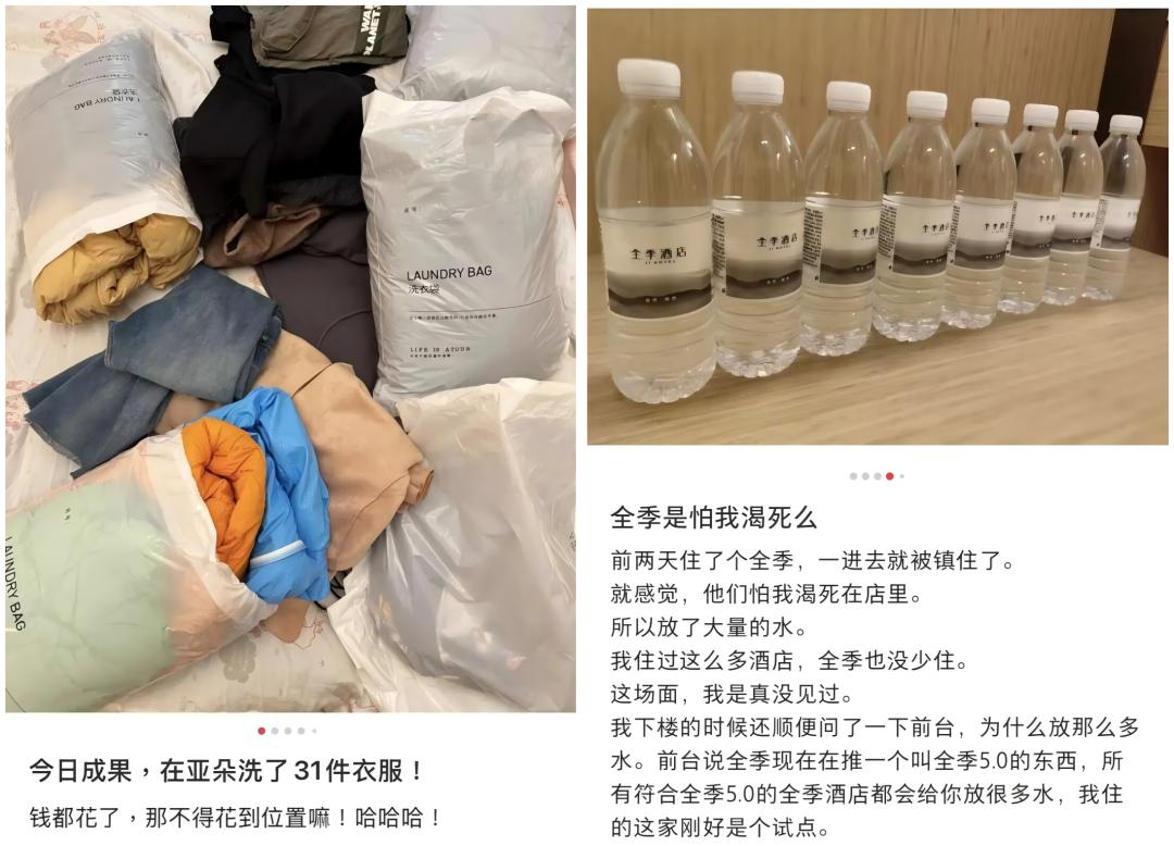 亞朵、全季等品牌通過人性化服務(wù)吸引大量年輕消費(fèi)者,比如全季標(biāo)配8瓶礦泉水,亞朵提供免費(fèi)小冰箱和自助洗衣服務(wù)。