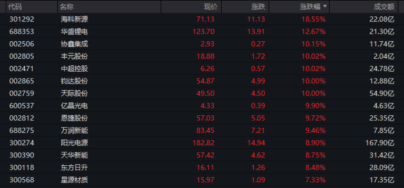 電力設(shè)備板塊同樣掀起漲停潮,??菩略匆欢?0%漲停,協(xié)鑫集成、中超控股、豐元股份、天際股份等多股漲停。