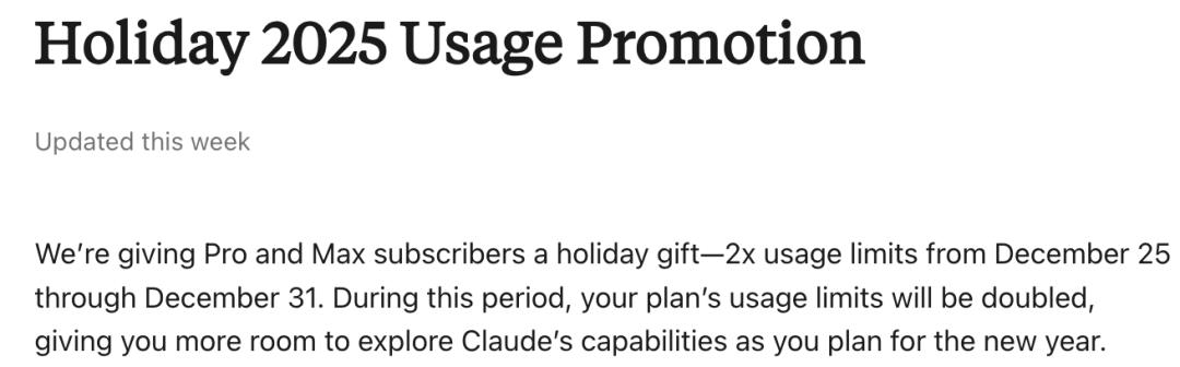 Anthropic官網(wǎng)在「2025年假日使用促銷」中提到,為Pro和Max訂閱用戶準(zhǔn)備了節(jié)日福利: