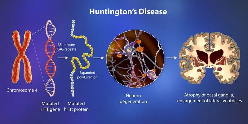 亨廷頓病由基因突變引發(fā),異常蛋白質(zhì)導致腦損傷,最終致患者失能死亡。