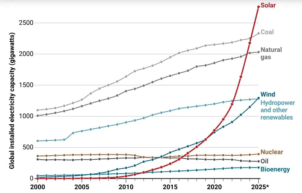 值得慶幸的是,以光伏發(fā)電為代表的可再生能源正蓬勃興起。據(jù)全球能源智庫Ember統(tǒng)計,2025年可再生能源發(fā)電量在全球范圍內(nèi)首次超過煤炭,這一能源格局的轉(zhuǎn)變?yōu)榭沙掷m(xù)發(fā)展注入新希望,是環(huán)境領域的重大利好。